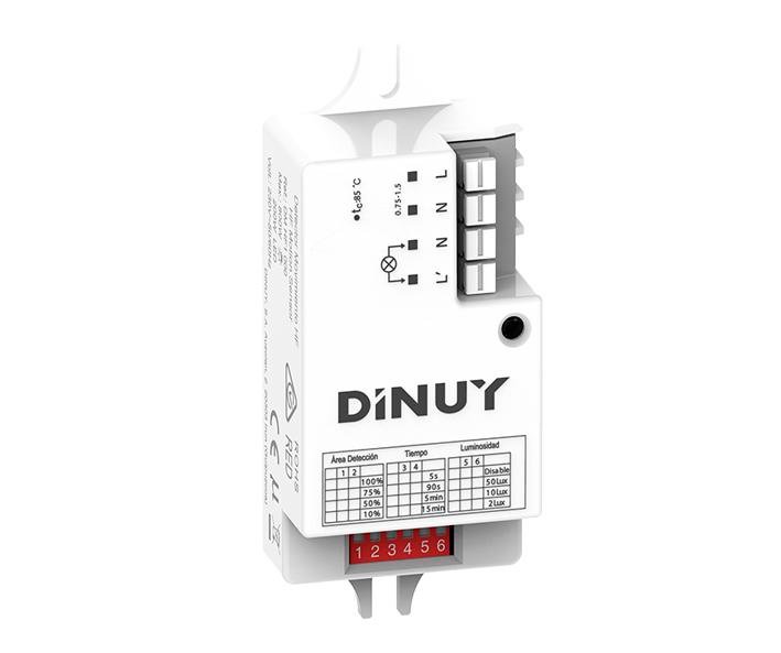 El Dinuy Detector de movimiento de alta frecuencia es un dispositivo avanzado que utiliza tecnología de radar para ofrecer una detección precisa y confiable en instalaciones ocultas. Gracias a su tecnología que envía ondas electromagnéticas a 5.8 GHz y recibe su eco, este sensor puede detectar movimiento a través de puertas, cristales, falsos techos y paredes, garantizando una cobertura efectiva de hasta 360º y un alcance de Ø8 metros cuando se instala a 2.5 metros de altura. La regulación personalizada mediante DIP en temporización, luminosidad y sensibilidad permite adaptar el sensor a diferentes entornos, optimizando el consumo energético y la seguridad en espacios públicos, ascensores, baños y más.