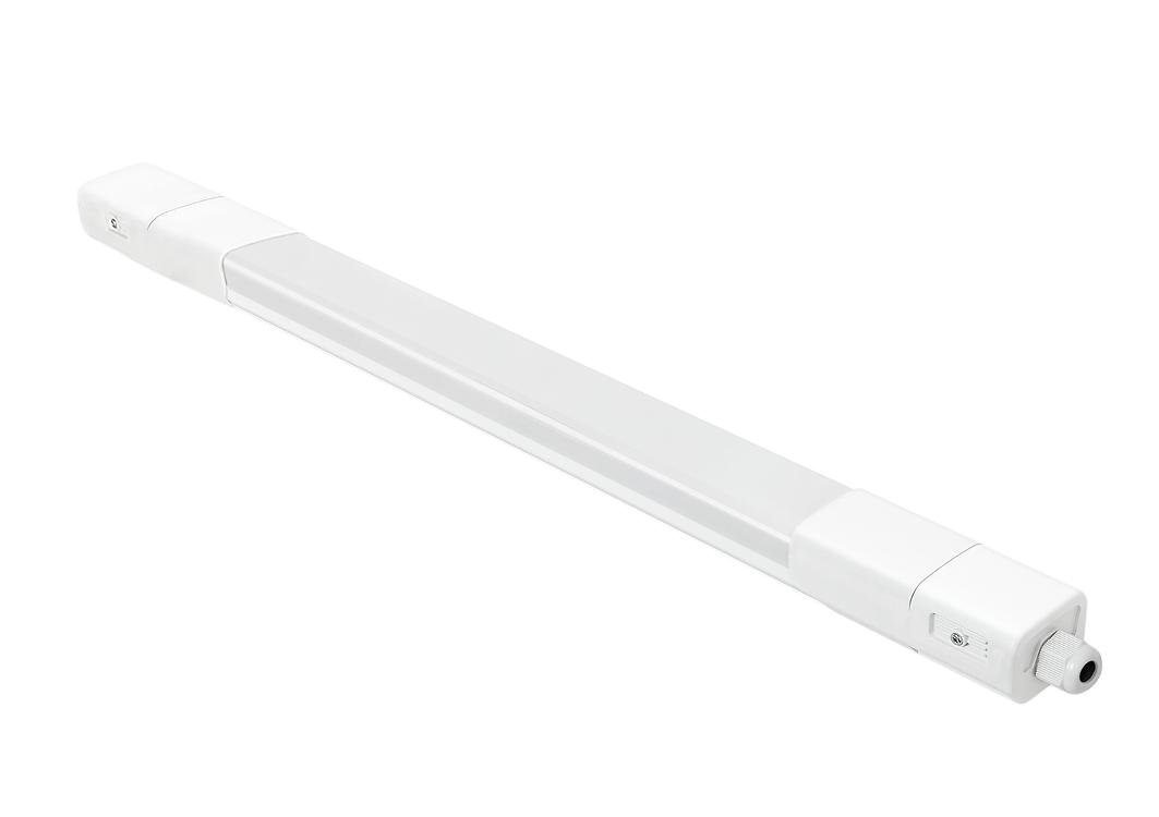 Este modelo cuenta con un grado de protección IP66 y IK08, asegurando resistencia contra polvo, agua y golpes. La tecnología de alimentación en 220-240V 50/60Hz junto con una potencia de aproximadamente 19W y un factor de potencia de 0,9 hacen que sea eficiente energéticamente, proporcionando una vida útil esperada de 54.000 horas con certificación L70B10. La versión estándar, con modo de instalación adosada al techo de manera directa, facilita su integración en diferentes tipos de construcciones y proyectos. El acabado en blanco y dimensiones compactas (600x53x41mm) aseguran una apariencia moderna y discreta, perfecta para aplicaciones en exteriores, garajes, almacenes o zonas de trabajo con elevado grado de protección y fiabilidad.
