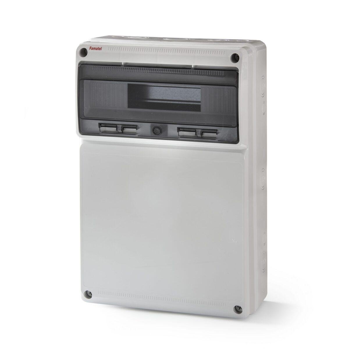 La Famatel Envolvente ciega de 16 módulos IP65, fabricada en ABS con ventana transparente en PC, ofrece una solución robusta y resistente para proteger componentes eléctricos en entornos exigentes. Incluye tapones interiores para garantizar la protección IP y la opción de enlazarla con otras unidades, facilitando instalaciones modulares y de mayor tamaño. Ideal para proyectos que demandan un alto nivel de protección contra polvo y agua, esta envolvente combina sencillez en la instalación y compatibilidad con diversos sistemas eléctricos.