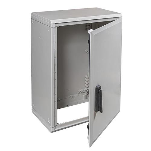 Este modelo destaca por su clasificación IP55, que asegura protección contra polvo y chorros de agua, ideal para ambientes industriales, exteriores o donde se requiere resistencia a condiciones adversas. La estructura de poliéster reforzado con fibra de vidrio, combinada con juntas de estanqueidad y un grosor de paredes que varía entre 3 y 4 mm, proporciona una resistencia mecánica excepcional y una larga vida útil. La superficie de acabado en RAL 7035 añade un toque estético y resistente a la corrosión, garantizando que el armario mantenga sus características iniciales a lo largo del tiempo.