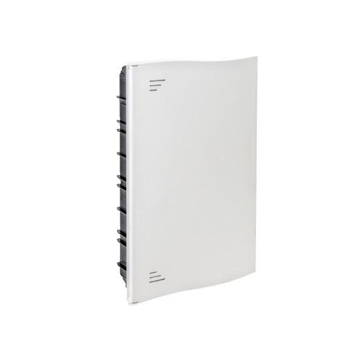 La caja de distribución IP40 empotrada en paredes convencionales, referencia DFF42PO, ofrece una estructura sólida diseñada para garantizar una protección eficiente en ambientes internos. Con dimensiones exteriores de 532x334x105 mm y un hueco de instalación de 504x305x72 mm, permite integrar hasta 3 módulos de 14 raíl DIN cada uno, sumando un total de 42 módulos. Construida en poliestireno libre de halógenos y recubierta con una tapa-ventana opaca en el mismo material, esta caja combina durabilidad y seguridad en un diseño compacto y funcional.