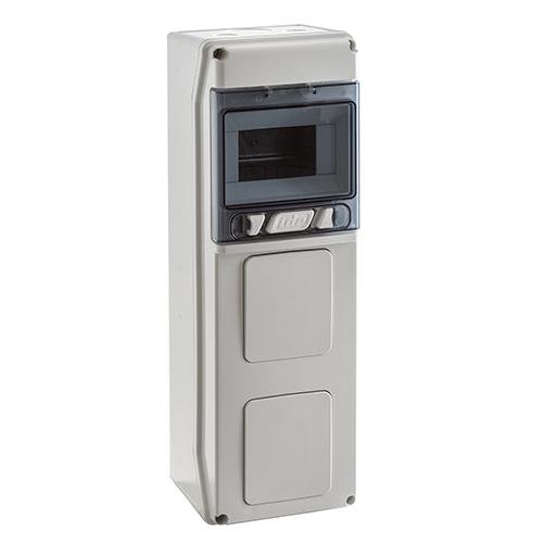 Este cofret destaca por su construcción en materiales plásticos libres de halógenos, complementados con un marco y base en ABS resistente a la acción del sol y a condiciones ambientales extremas, cumpliendo con la protección UV según la norma ISO 4892-2, Método A. Con dimensiones exteriores de 436x142x137 mm, permite alojar una configuración de 1×6 módulos en superficie, facilitando su instalación en paredes, mobiliario o elementos estructurales. Sus tapas lisas incluyen una específica para bases de 16A/Schuko IP67 y otra para versiones IP44/IP54, asegurando un cierre hermético y protección contra agentes externos. Para una adecuada conexión, cuenta con múltiples entradas de cables con medidas específicas (M20, M40, OB25x25), permitiendo acometidas variadas sin comprometer la integridad del equipo. Esta regleta soporta tensiones de hasta 1000 V AC y 1500 V DC, con una intensidad máxima admisible de 125A, garantizando compatibilidad con diferentes instalaciones eléctricas.