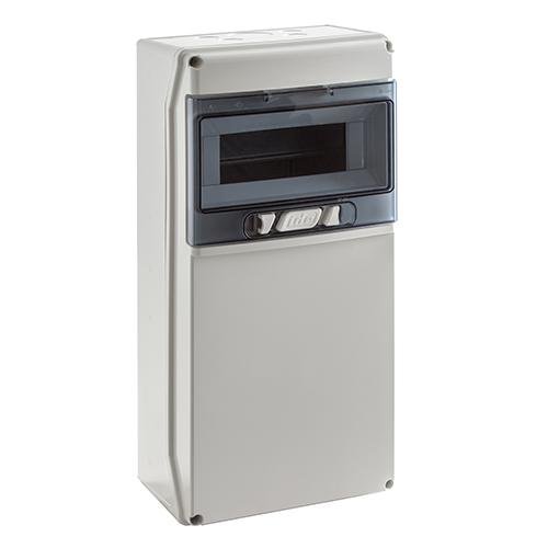 IDE COFRET IP65 PARA TOMAS DE CORRIENTE 1×9 MÓDULOS VENTANA TRANSPARENTE REGLETA N&T Referencia: CSN9PT/RR