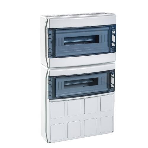 IDE COFRET IP65 PARA TOMAS DE CORRIENTE 2×18 (36) MÓDULOS VENTANA TRANSPARENTE TAPAS PRETROQUELADAS: Alta protección y durabilidad en instalaciones eléctricas exteriores