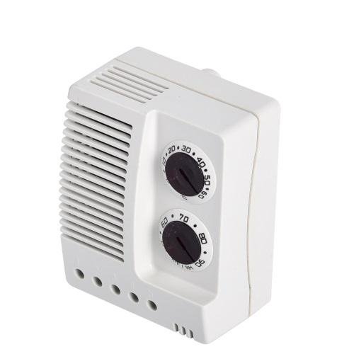 El IDE HIGROTERMO Referencia HT250 es un accesorio avanzado diseñado para gestionar de manera eficiente la humedad y la calefacción en diversos entornos. Con dimensiones compactas de 77x60x43 mm y montaje vertical mediante un clip para raíl DIN de 35 mm, este dispositivo se integra fácilmente en instalaciones eléctricas y sistemas de control de climatización. Fabricado en plástico de alta resistencia UL94 V0 y con acabado en gris claro, garantiza durabilidad y compatibilidad estética en instalaciones profesionales. Su conexión eléctrica mediante borne de 5 polos con par de apriete de 0,5 Nm asegura una conexión segura para cables flexibles de 1,5 mm² y cables rígidos de 2,5 mm². La capacidad de conmutación del relé, con contactos NC y NA, permite controlar cargas hasta 240 VAC, 6 A y 8 A respectivamente, facilitando el control de diversos dispositivos de calefacción y humidificación.