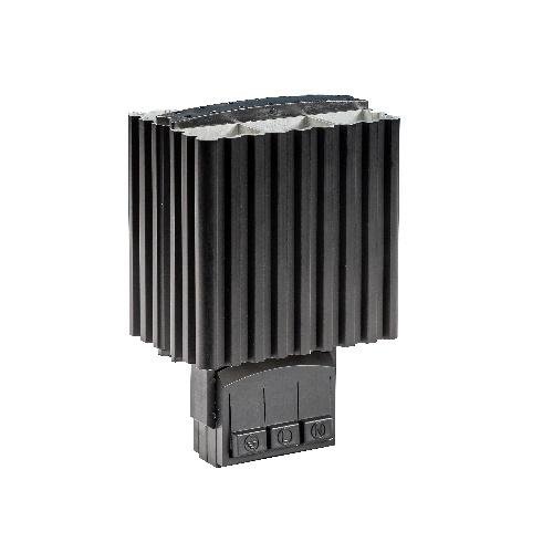 La resistencia calefactora RC15SV es un componente que ofrece una alimentación versátil en un rango de 110 a 250 V en corriente alterna o directa, con una potencia de 15 W y una corriente máxima de 1,5 A. Su elemento calefactor es una resistencia PTC, autorregulada y equipada con limitador de temperatura, garantizando un funcionamiento seguro y eficiente. Está fabricada en aluminio extruido anodizado que asegura buena conductividad térmica y durabilidad, mientras que la carcasa de conexión en plástico negro UL94 V0 cumple con los estándares de seguridad. Con unas dimensiones de 70x70x60 mm y un peso de solo 0,14 kg, esta resistencia es compatible con montajes en riel DIN de 35 mm mediante su clip de sujeción, en posición vertical.