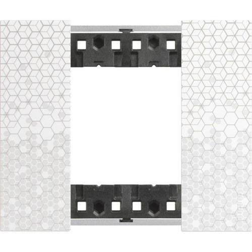 La placa Living Now Legrand LN-PLACA 2M PIXEL es un accesorio de acabado PIXEL elaborado en tecnopolímero con efecto pixel, diseñado para complementar con estética moderna y funcionalidad los interruptores y tomas en instalaciones internas. Su estructura de 2 módulos, fabricada en Zamak cepillado, permite una integración armoniosa en cualquier ambiente, gracias a su diseño compacto y líneas geométricas precisas. La placa cuenta con un marco flotante flexible en las esquinas, que se fija en la parte trasera, facilitando una instalación profesional y alineada, incluso en superficies irregulares o en cajas de empotrar universales. La superficie completamente plana, lograda mediante un sistema de autocentrado en las teclas, asegura una apariencia uniforme y estética en toda la pared, evitando arañazos o manchas superficiales tras la instalación.