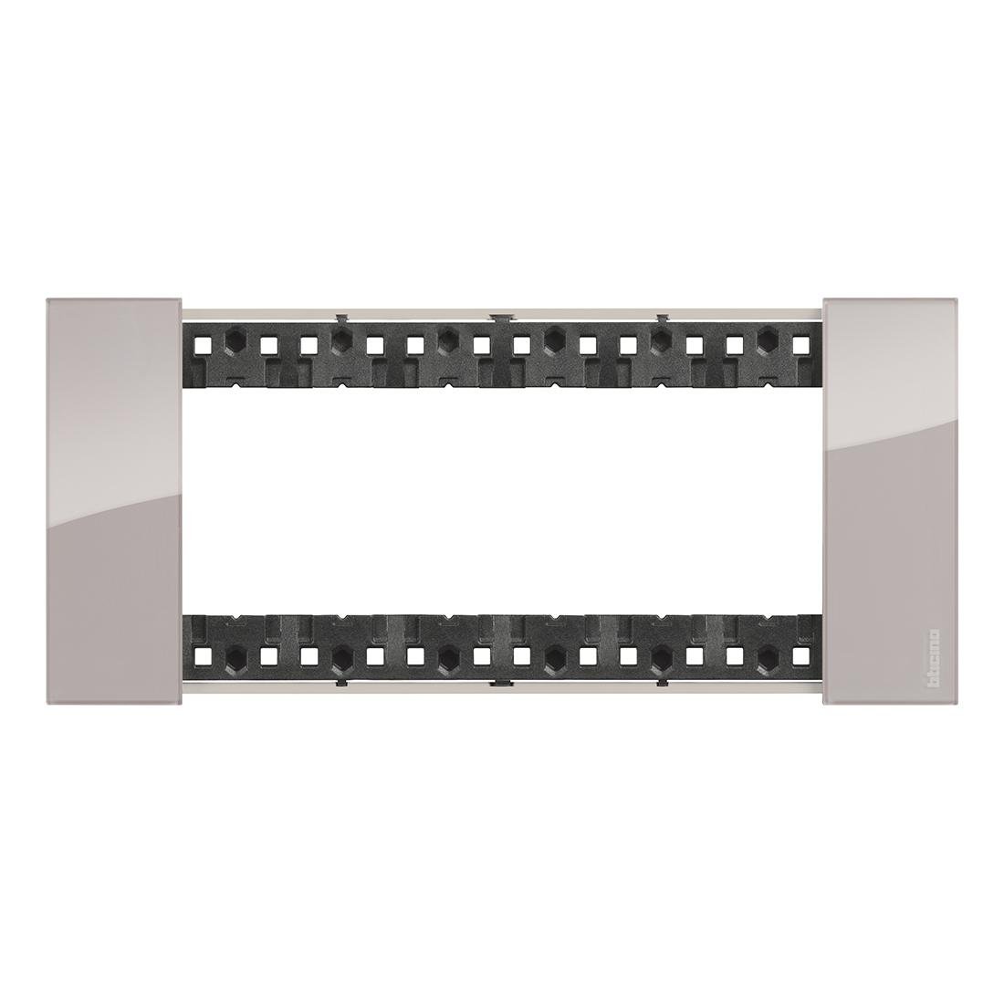 Una de las principales ventajas de esta placa embellecedora es su marco flotante, que puede moverse en las cuatro esquinas gracias a un sistema de soporte flexible en la parte trasera. Esto permite realizar una instalación perfecta incluso en paredes con irregularidades o en cajas de empotrar que presenten imperfecciones. Además, su diseño innovador con una superficie perfectamente plana y mecanismos siempre alineados facilita una colocación sencilla y segura. La estructura bimaterial en tecnopolímero no solo confiere un acabado brillante y moderno sino que también aporta ligereza y resistencia al producto. La compatibilidad con soportes de marca Bticino y tornillos ref.K4706 garantiza una fijación segura en diferentes tipos de paredes, ofreciendo una solución estética y fiable para instalaciones residenciales y comerciales.