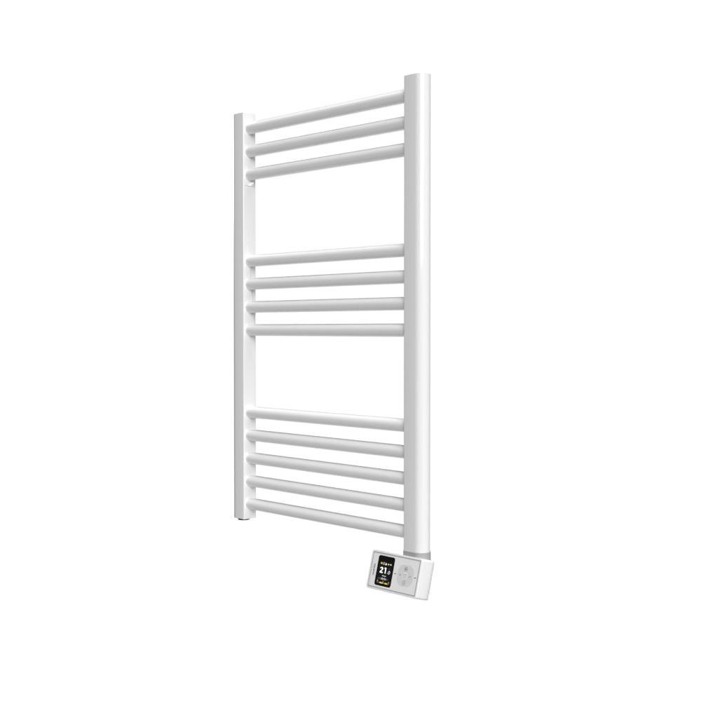 Este modelo de secatoallas cuenta con un acabado en acero 100 % y dimensiones de 865 × 500 × 95 mm, pensado para integrarse con facilidad en cualquier espacio. La interfaz incluye un panel táctil TFT inclinado 30°, que mejora la accesibilidad y legibilidad, permitiendo un control intuitivo. Su conectividad WiFi Direct facilita la gestión remota desde la app Rointe NEXA, compatible con asistentes de voz, lo que facilita su uso diario y optimización energética.