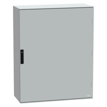 El Schneider 7035 WM PLM de dimensiones 1056x852x350 mm es un monobloque de armario de poliéster de montaje mural, diseñado para ofrecer durabilidad, resistencia y protección en entornos eléctricos exigentes. Elaborado con poliéster reforzado con fibra de vidrio y acabado en gris RAL 7035, este armario garantiza una excelente protección contra factores externos, resistencia al fuego de hasta 960 °C, además de cumplir con normativas internacionales como IP66, IK10 y NEMA (13,4X). Su tejadillo integrado y la estructura de una sola pieza moldeada facilitan su instalación y mantenimiento, permitiendo un acceso sencillo a la parte frontal y un cierre de 4 puntos que asegura la seguridad del contenido interior.