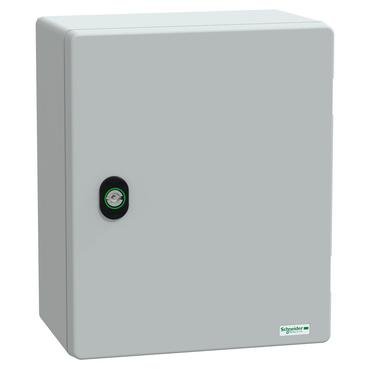 El Schneider Arm pol PLM 308x250x160 IP66 7035 es un gabinete montado en la pared diseñado para ofrecer una protección robusta en aplicaciones multiusos, tanto en entornos industriales como exteriores. Fabricado con poliéster reforzado con fibra de vidrio, garantiza durabilidad, resistencia a impactos, polvo, agua y variaciones extremas de temperatura, soportando condiciones adversas sin comprometer su rendimiento. Su diseño incluye una puerta lisa con cierre de doble barra de 3 mm, permitiendo un acceso seguro y fácil, mientras que su clasificación IP66 e IK10 asegura máxima protección contra elementos externos y golpes.