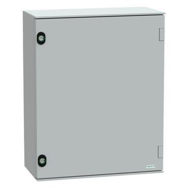 El Schneider Arm pol PLM 530x430x200 IP66 7035 es un armario monobloc de poliéster reforzado con fibra de vidrio, diseñado para ofrecer una protección superior en aplicaciones multiuso. Con unas dimensiones de 530 mm de altura, 430 mm de ancho y 200 mm de profundidad, este gabinete presenta un acabado en gris RAL 7035, ideal para ambientes industriales y exteriores. Está equipado con una tolva integrada y construido en una pieza moldeada con muescas posteriores, garantizando durabilidad y facilidad de montaje. La estructura incluye dos cierres de doble barra de 3 mm, asegurando un sistema de bloqueo fiable y seguro. Su envasado en poliéster reforzado le confiere resistencia al impacto, resistencia a la intemperie y propiedades anticorrosivas, además de ser autoextinguible y libre de halógenos. Cumple con certificaciones NEMA 4X, NEMA 13 e IEC 62208, y soporta temperaturas extremas desde -40 °C hasta 80 °C, apto para instalaciones tanto internas como externas.