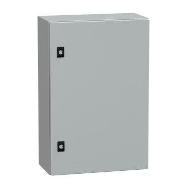 El Schneider CRN 600x400x200, una puerta ciega, es un armario compacto de montaje mural diseñado para ofrecer máxima protección y durabilidad en entornos exigentes. Elaborado en acero con un acabado en polvo de epoxi-poliéster, este dispositivo combina resistencia mecánica y protección contra elementos, garantizando un funcionamiento seguro y eficaz en diversas aplicaciones. Con dimensiones de 600 mm de altura, 400 mm de ancho y 200 mm de profundidad, presenta una estructura sólida con un nivel IP66 e IK10, proporcionando protección contra polvo, agua y impactos. Además, su diseño con una parte posterior soldada de doble perfil y laterales plegados asegura un área sellada y protegida, ideal para instalaciones en exteriores o ambientes industriales. La puerta lisa, con apertura reversible y cerradura de doble barra de 3 mm, facilita el acceso y la seguridad, mientras que su acabado en superficie garantiza una apariencia brillante y uniforme. Certificado como producto green premium y homologado con certificaciones c.UL, UL, y DNV-GL, este armario garantiza cumplimiento normativo y compromiso con la sostenibilidad en el uso de sustancias peligrosas.